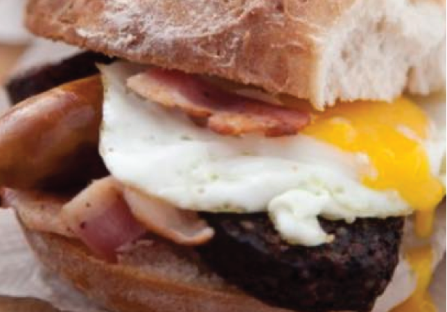 bacon and free range eggs fresh from our counter in all our fresh handmade products.